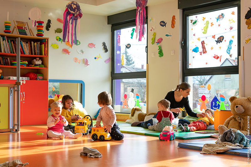 À Hilsenheim, nos professionnelles accueillent votre enfant dans une ambiance familiale et sécurisante. Chaque jour, elles accompagnent les enfants avec douceur, respect du rythme et beaucoup d’attention. Les espaces lumineux et chaleureux sont pensés pour favoriser l’exploration, l’autonomie et le plaisir de jouer. Musique, histoires, activités créatives et sorties nature rythment la vie de la crèche. Les familles trouvent ici un lieu rassurant, où la confiance et la bienveillance sont au cœur de chaque relation.