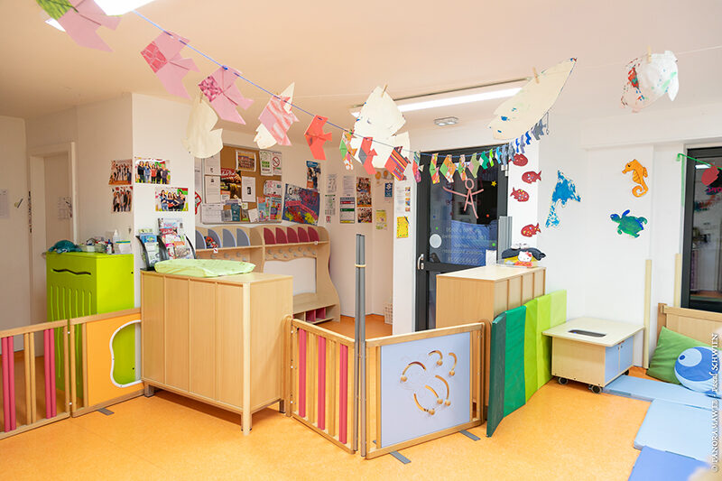 À Muttersholtz, nos professionnelles accueillent votre enfant dans une ambiance familiale et sécurisante. Chaque jour, elles accompagnent les enfants avec douceur, respect du rythme et beaucoup d’attention. Les espaces lumineux et chaleureux sont pensés pour favoriser l’exploration, l’autonomie et le plaisir de jouer. Musique, histoires, activités créatives et sorties nature rythment la vie de la crèche. Les familles trouvent ici un lieu rassurant, où la confiance et la bienveillance sont au cœur de chaque relation.